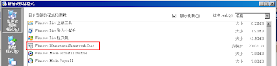 2.在 Windows XP 和 Windows Server 2003,請按一下 [開始]、 按一下 [控制台]、 按一下 [新增或移除程式],然後按一下以選取 [顯示更新] 核取方塊]。 按一下標題為 Windows 管理架構核心 更新,然後按一下 [解除安裝。