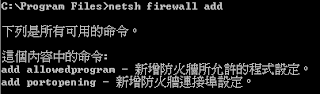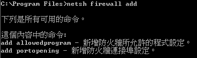 | netsh firewall add allowedprogram /? |