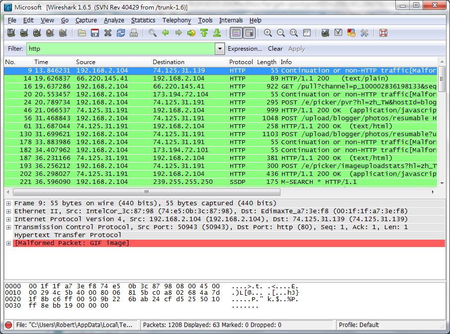 filter篩選,過濾條件,參考http://wiki.wireshark.org/DisplayFilters