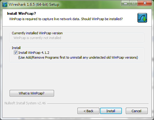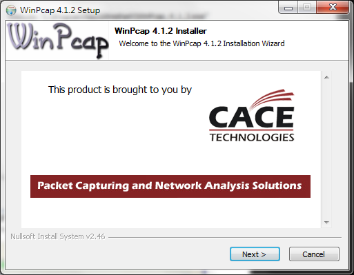 同一般軟體安裝法,中會安裝WinPcap(Windows Packet Capture,WinPcap is the Windows version of the libpcap library; it includes a driver to support capturing packets.)